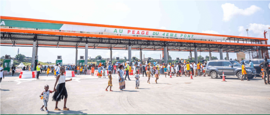 Construit sur le 4eme pont d’AbidjanLe péage fonctionnel à partir du 1er juilletUn troisième péage dans le District d’Abidjan, après ceux du pont Henri Konan Bédié (reliant la commune de Cocody à celles de Marcory) et d’Attinguié (PK 18 route de Yamoussoukro). Cette infrastructure qui relie les communes de Yopougon à celles du Plateau, d’Attécoubé et d’Adjamé, sera officiellement mis en service le lundi 1ᵉʳ juillet 2024, informe un communiqué du ministère de l’Équipement et de l’Entretien Routier.